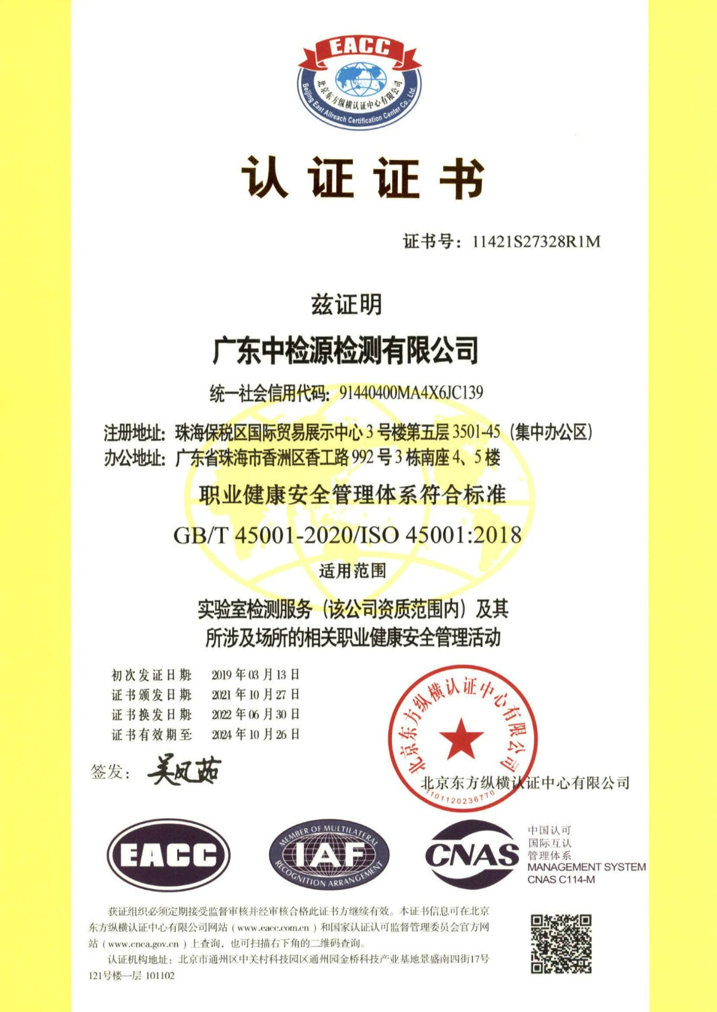 職業(yè)健康安全管理體系認(rèn)證(ISO45001)